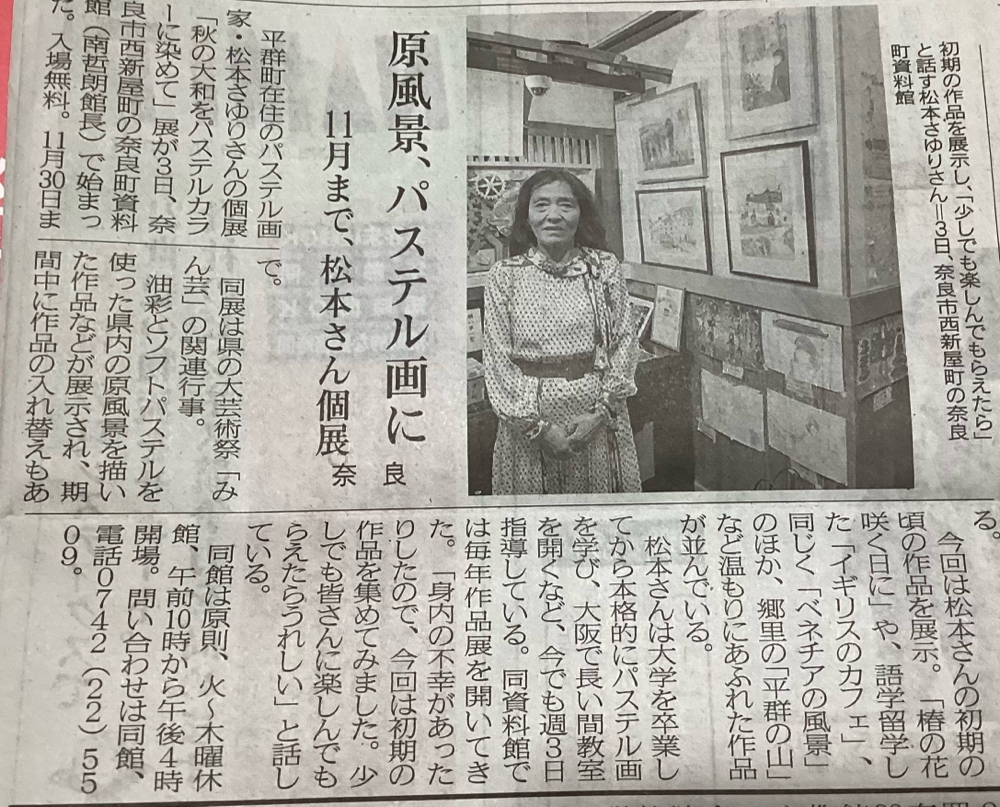 パステルライフ 松本さゆり 10月6日 奈良新聞に掲載いただきました。